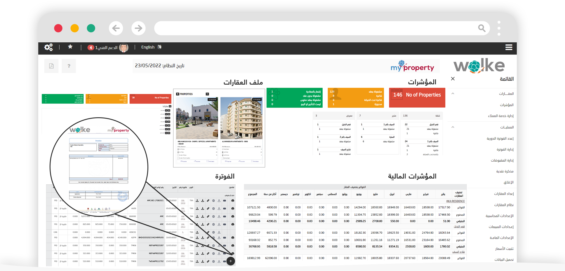 تغطي إدارة العقارات كل مايتعلق بأعمالك العقارية كما يسمح لك بإدارة الممتلكات للتأجير أو البيع مع سيطرة كاملة على البيانات المالية.